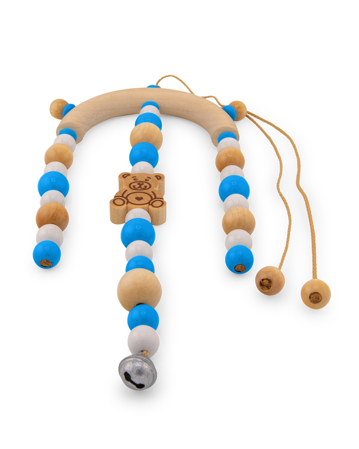 Die Zwergerlglück-Babymobiles werden mit viel Liebe von Hand gefertigt. Jedes Mobile besteht aus hochwertigen, speichelfesten Holzperlen und einem sanft klingenden Glöckchen, das Babys Sinne anregt und zugleich beruhigt.